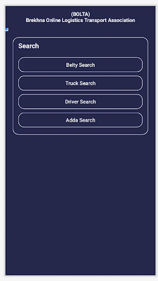 Bolty search app is used for verifying Adda/Warehouse, Truck, Driver and Malwala/Formers.