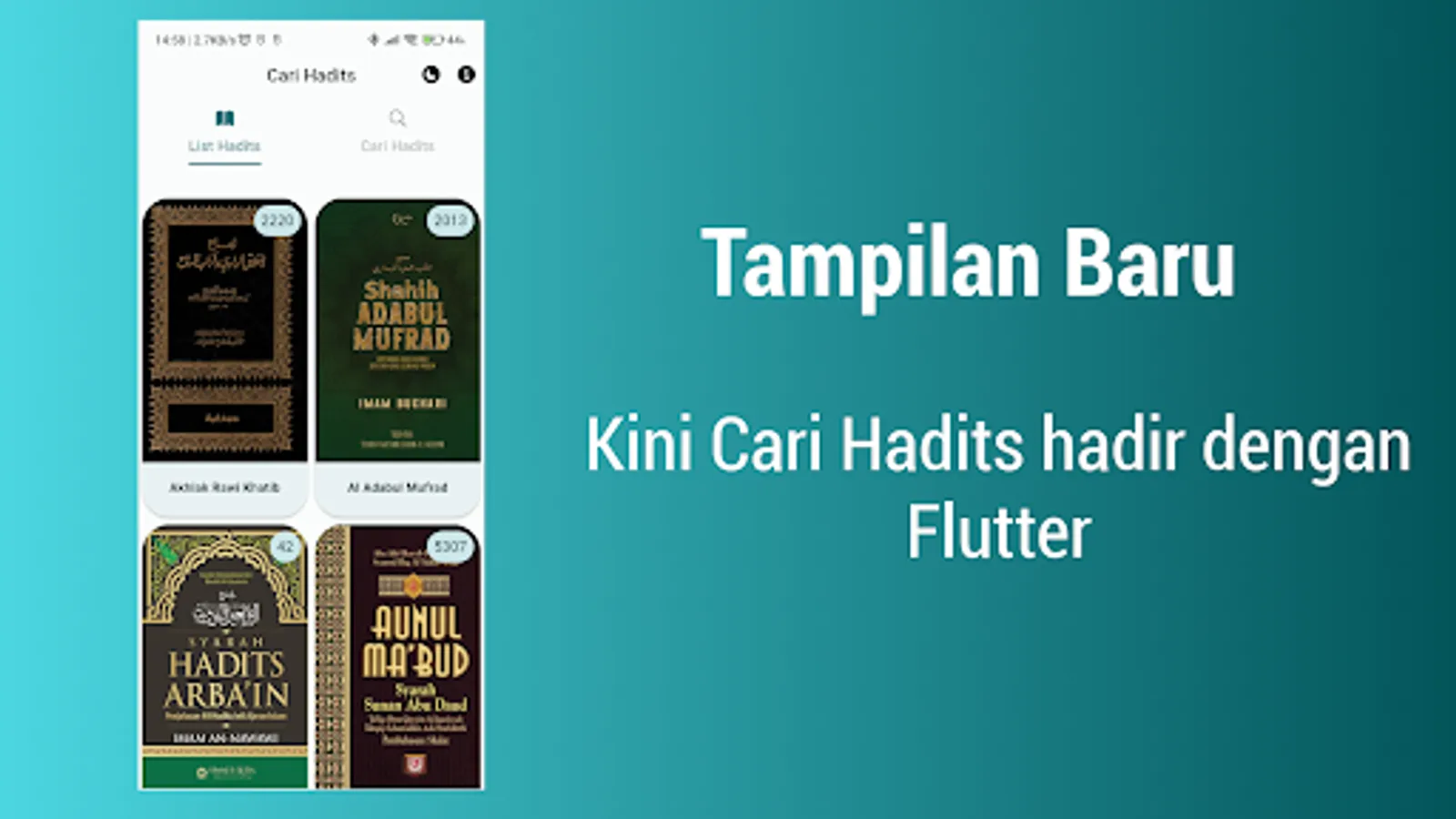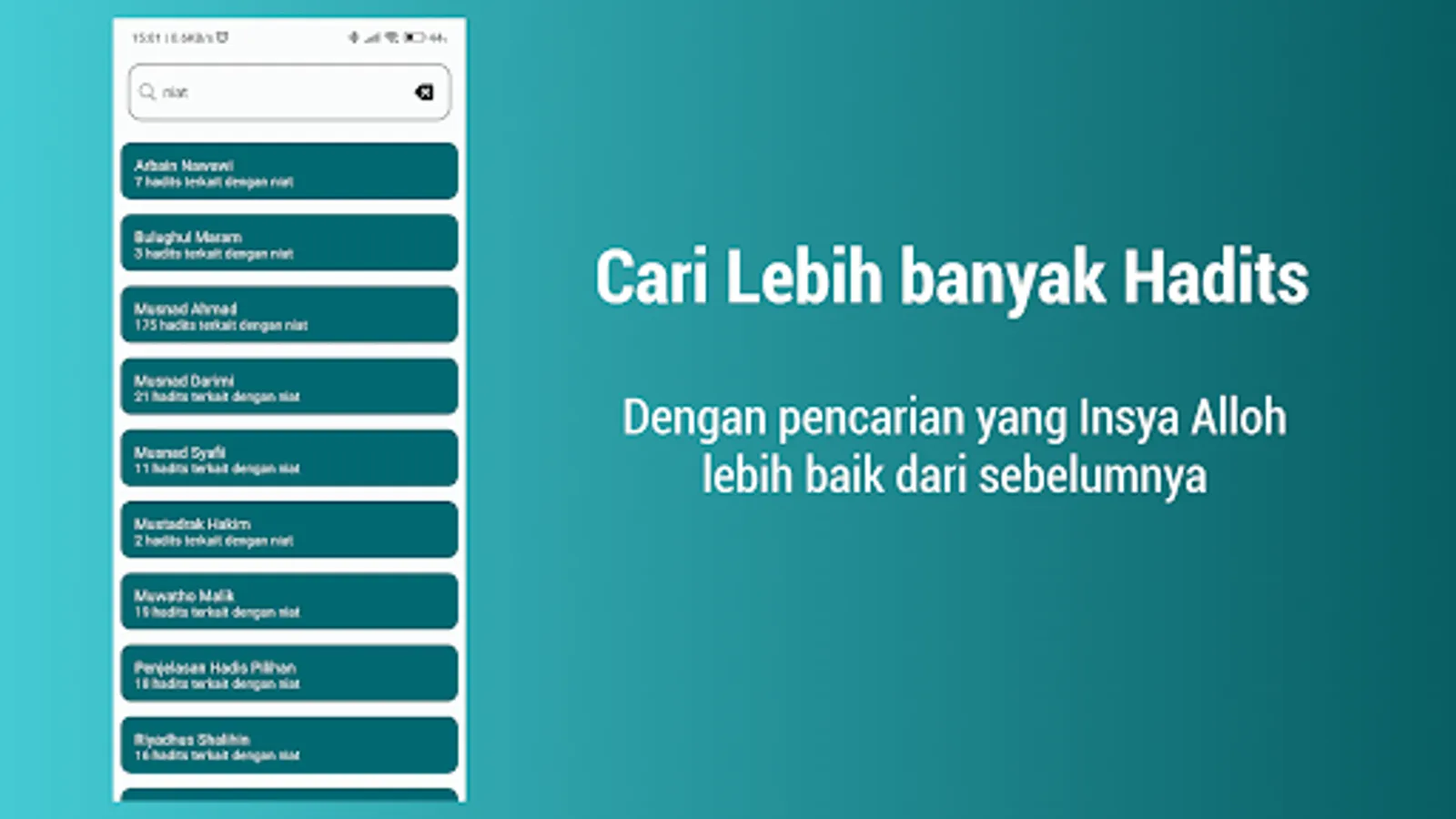 The Hadith Search application is made using the API www.carihadits.com