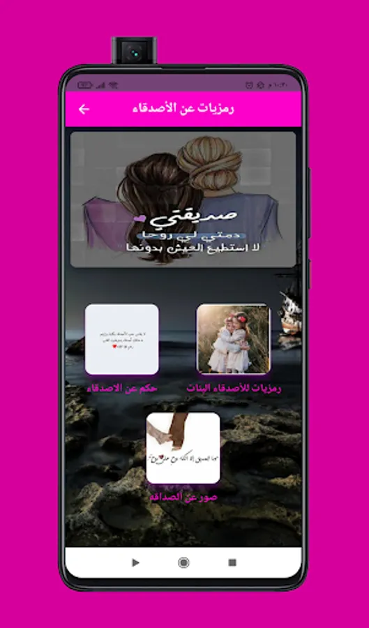حيث يتوفر عدد من رمزيات صديقات قابلة للمشاركة والتحميل وذات جودة عالية، داخل اقسام هذا التطبيق سوف تتنوع صور الصديقات والرمزيات لكي نلبي احتياجات معظم وكل البنات من كلام حلو لصديقتي ، ورسائل عيد ميلاد للصديقة التي نحب ونهوى .