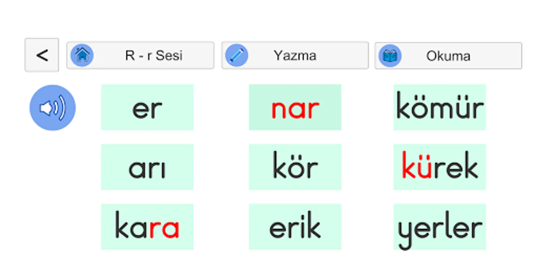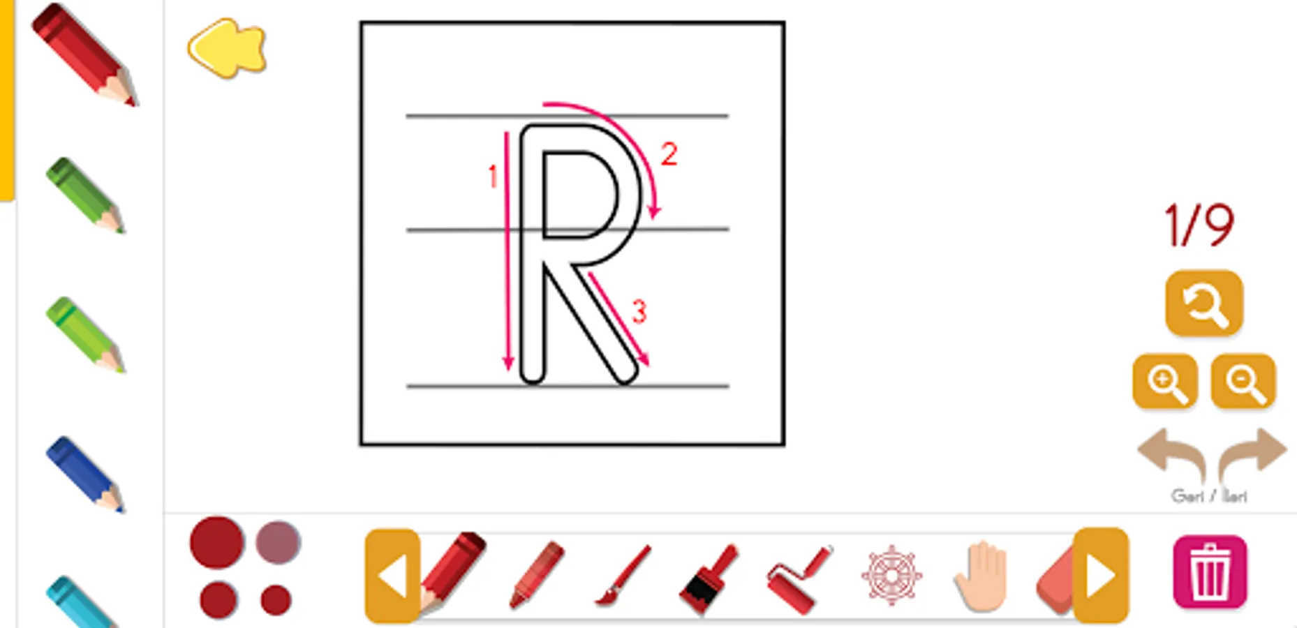 In our application, which will help you learn the spelling of the letter, feeling, spelling, sentence reading exercises, you can first paint and line work.