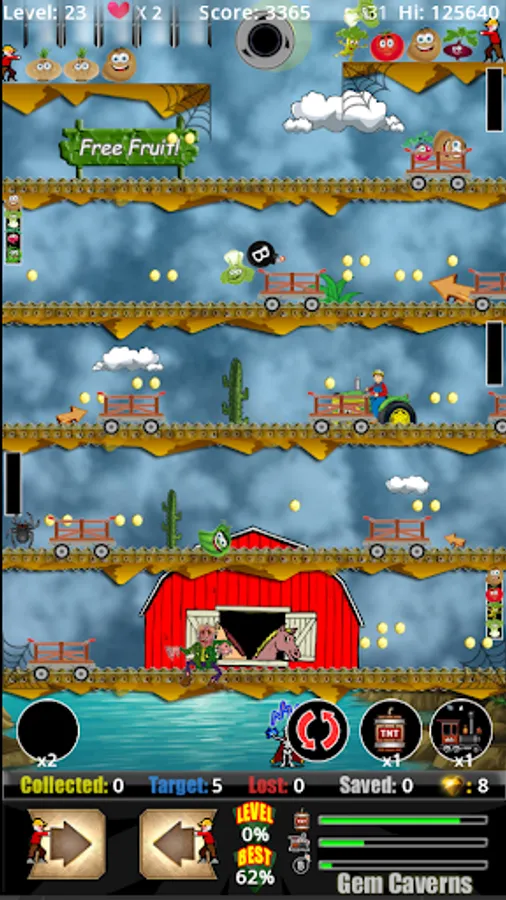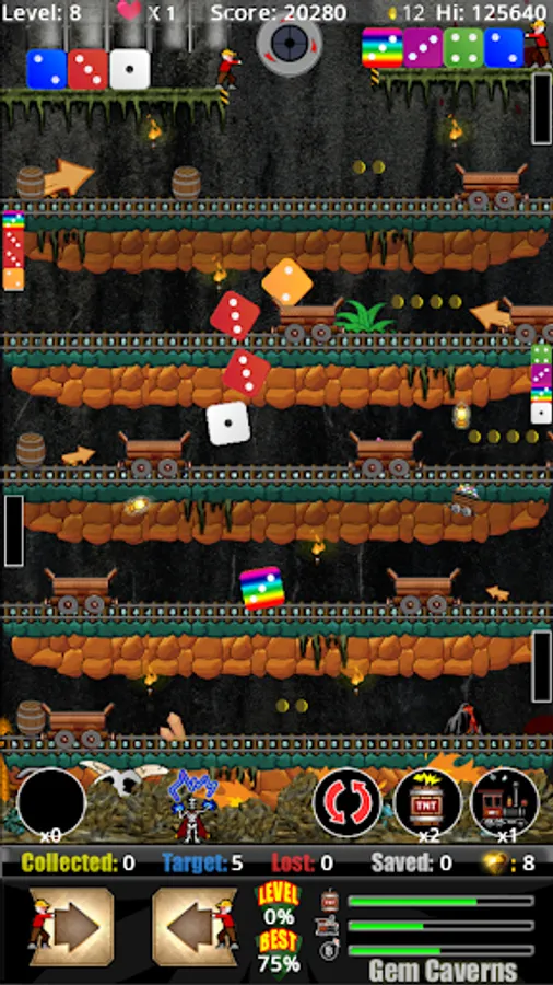 A Classic retro style game of physics where you drop/launch gems and other items into moving carts.