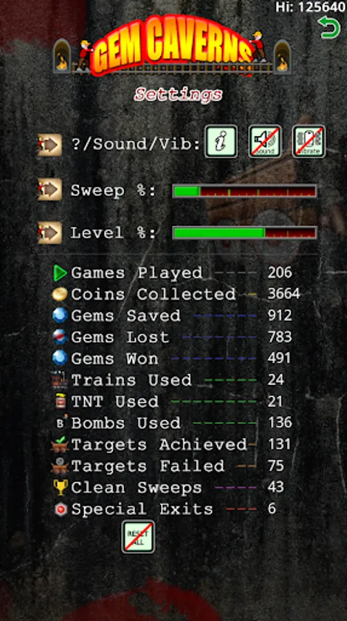 Once completed, you can review your games and levels and retry any that have a percentage lower than 100%