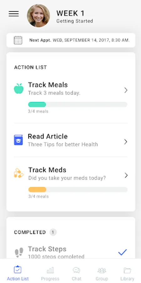 You would also be able to communicate with your care team at any time by chat messages or through video. The app also offers a group coaching option that will allow you to share and get support from other people in the program.