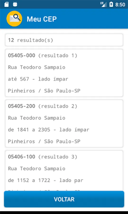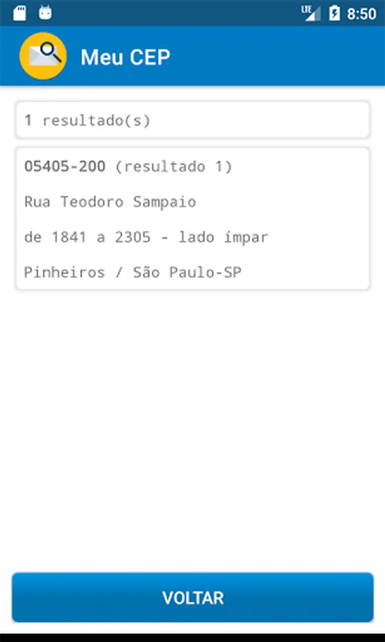 Need to find the zip code of a street in Brazil? With this app just enter the desired address that we found for you.