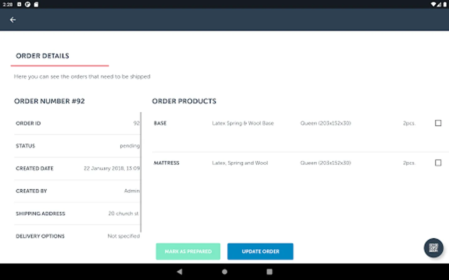 As Rockdale Mattress Factory is a Australian Bedding and Mattress company it is essential that the manufacturing process is always monitored. Though this app the sales team can automatically send any orders to the manufacturing department