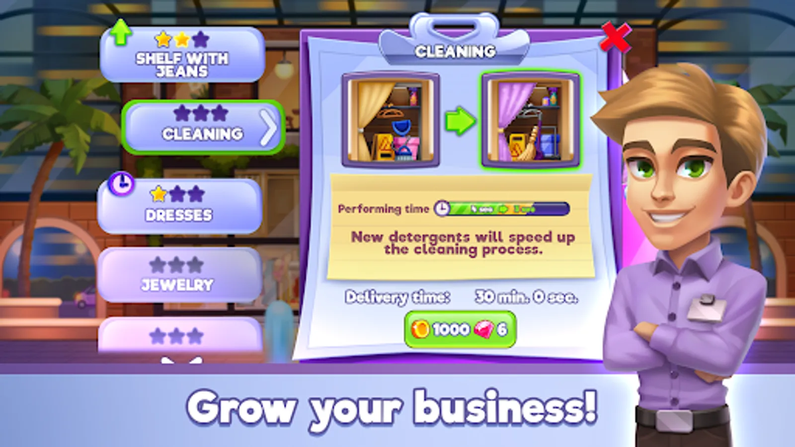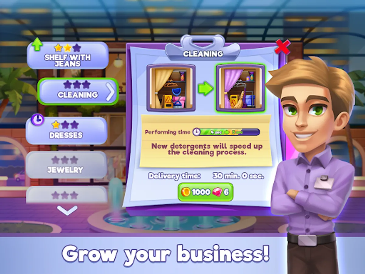As you progress in the game, hire employees to help you manage your fashion store games efficiently.