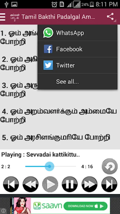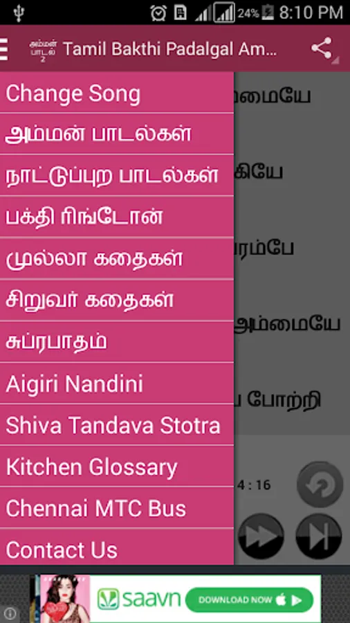 * Easy controls change song, Forward, Rewind, Next, Previous, Loop etc.