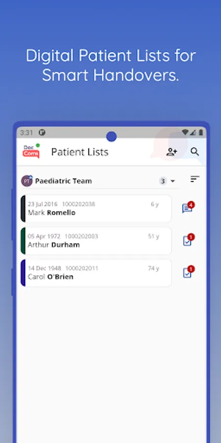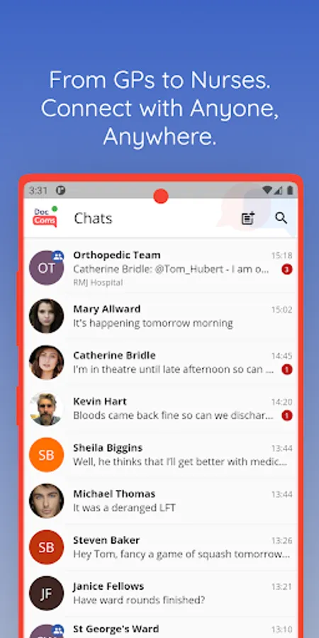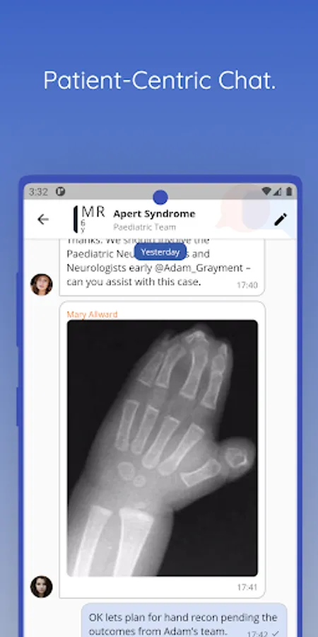 - A complete clinical workflow tool underpinned by familiar chat, for everything from patient discussions and lists, to delegation and tracking of clinical tasks.