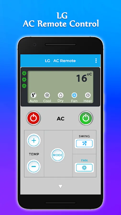 No worries use this LG AC Remote Control app which is free to install in your mobile and allow to handle AC with mobile. Find AC remote in your mobile with our app. App is a special design to use the same as remote into a mobile device which has all features to change your AC temperature or many more. Keep every time AC remote into your pocket through this application.