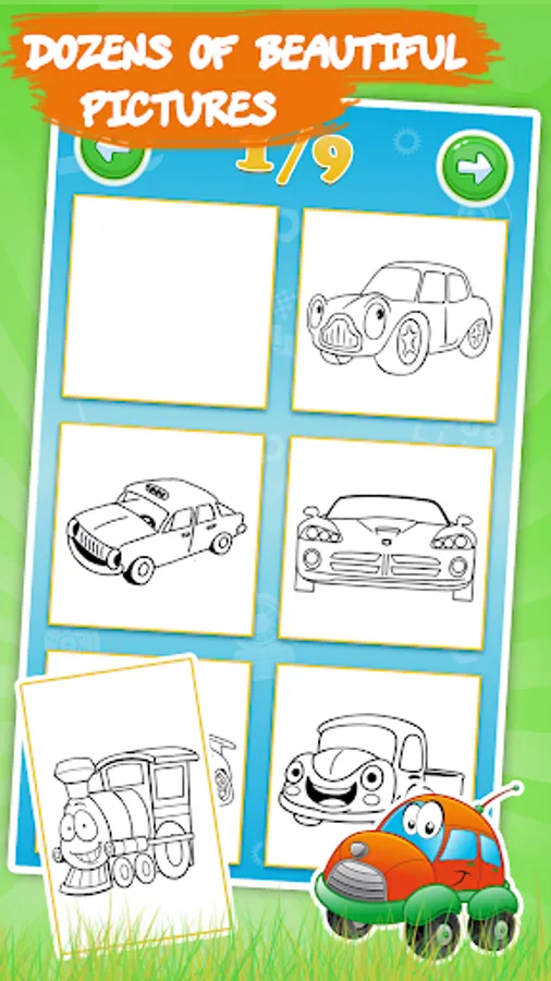 Drawing game contains the best collection of car drawing along with cartoon drawing such as race car coloring pages, police car coloring pages all for free!