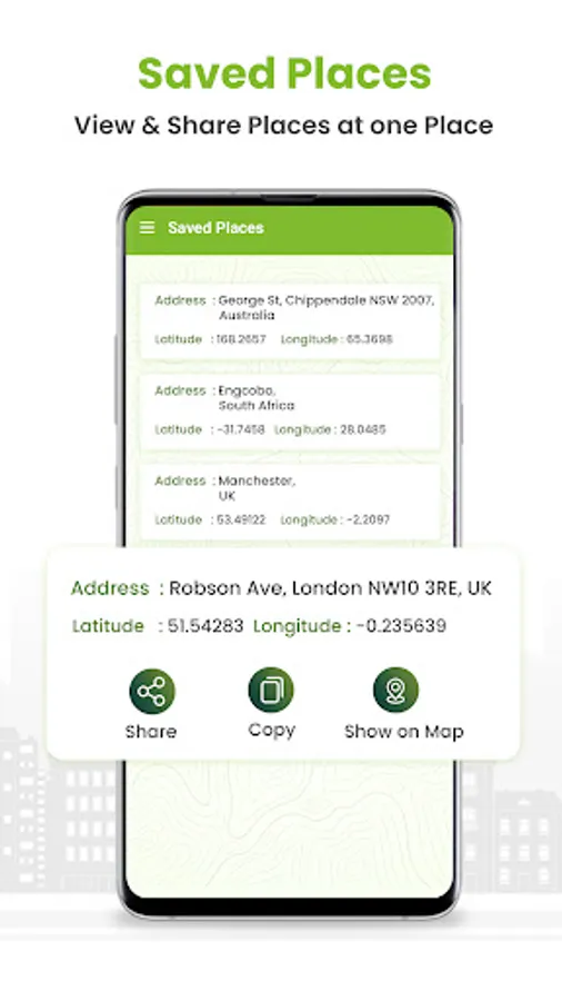 You can save all the places like live location, live address as a list and can check later, user can also share or copy the address they want. You can also change the units of measurements according to the use.