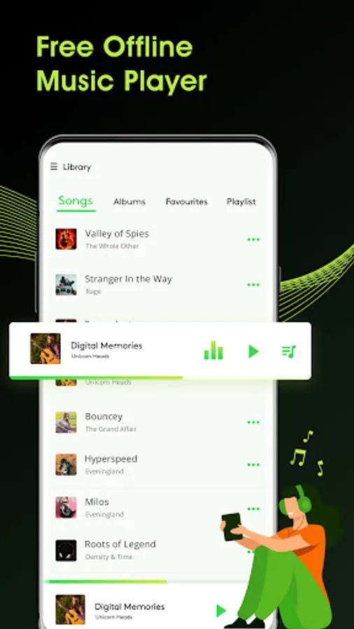 My Music Player - MP3 Player helps you to manage and maintain all your music files easily and quickly. This audio mp3 player supports almost all types of mp3, wav, flac, raw, aac files and other audio formats. Easily browse and play music songs by albums, genres, songs and folder.