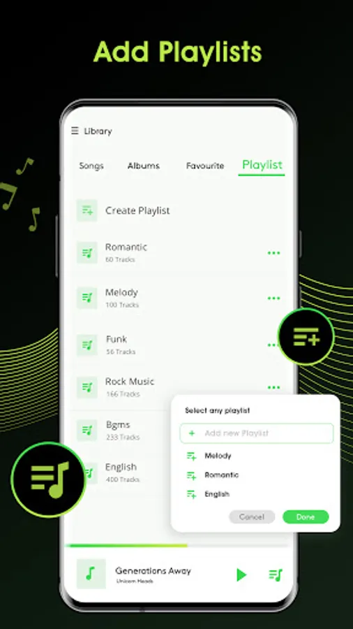 Personalize your music experience by creating and editing own playlists. You can manage your music files in a simple way, My Music Player will guide you easily to find all the music file formats in your phone.