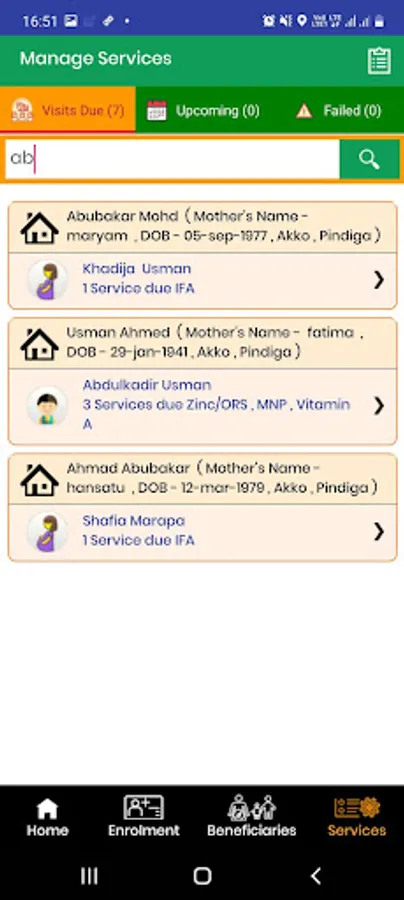 It will primarily be used for enrollment and service delivery. It will be designed to work in both online and offline data capture mode, keeping in mind that there might be limited/no internet connectivity in some areas. Mobile application will be used by the Community health workers and Facility health workers to enroll the beneficiary based on the service eligibility criteria. The Community health workers and Facility health workers will be able to capture information of the beneficiary such as Name, Age, and Address etc. It will also provide them with notification for upcoming services to beneficiaries along with ability to record the service delivery.