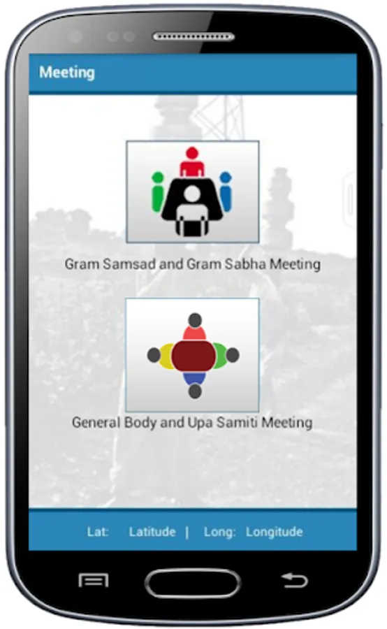 This App helps in capturing (Geo-tagging with date-time stamp) the different meeting of the Gram Panchayats and also provides provision to record important conversation (during the meeting) through voice recordings. Geo-tagged picture of the meeting can also be captured with this app.