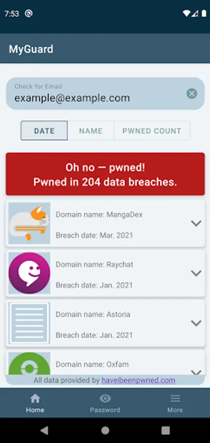 MyGuard is an app that intends to help users keep up-to-date with the world of leaks through billions of hacked websites and stolen data that became publicly available via the internet.