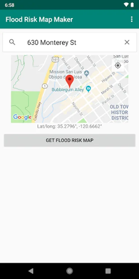 This app displays a printable map that shows the flood-prone areas near a given street address in the United States. Identify flood zones to watch out for after a rainstorm, tropical storm, or hurricane.