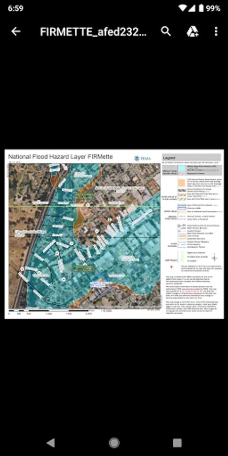 If the FEMA study data in your location is old, you'll need to have an app for opening zip files (such as Winzip) and an app for opening TIFF files (such as Multi-TIFF Viewer Free) so you can open the scanned maps that are used for those locations.