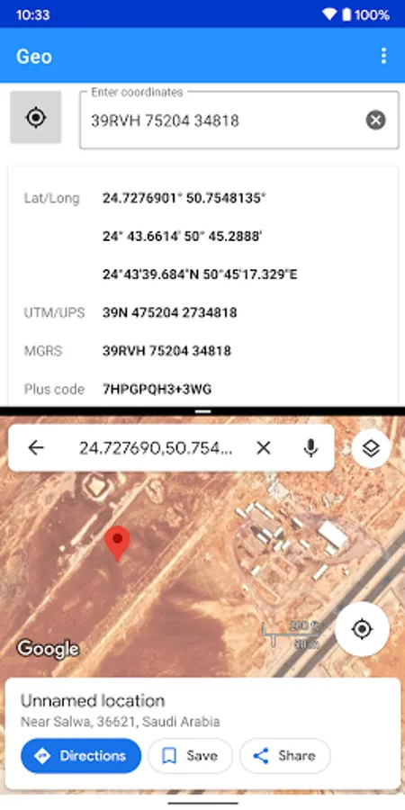 If you enter a Plus Code that represents an area, it is treated as a single point at its center.