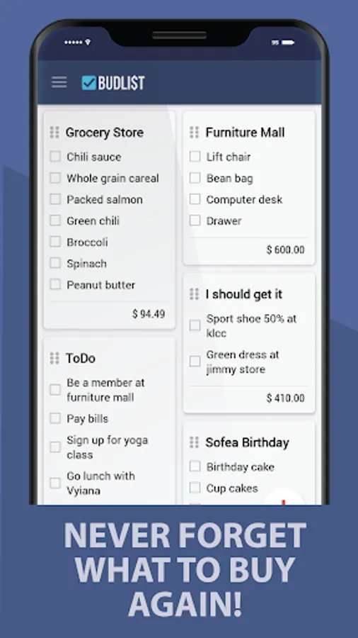 With BudList, you know what item you needs to buy and what item you already bought, with this way, you save a lot of time and money while shopping.
