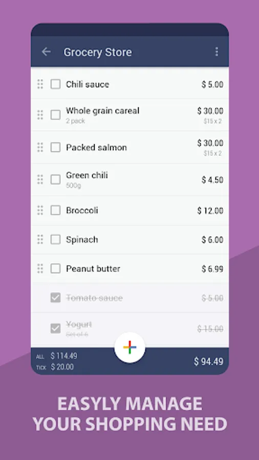 Every shopping list have two total price, first total is for all your item including tick and untick item.. and the second total is for untick item.. So you know how much money you should bring for you shopping trip. If you have limited budget.. you can tick item you don't really need just to fit your budget.