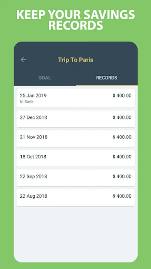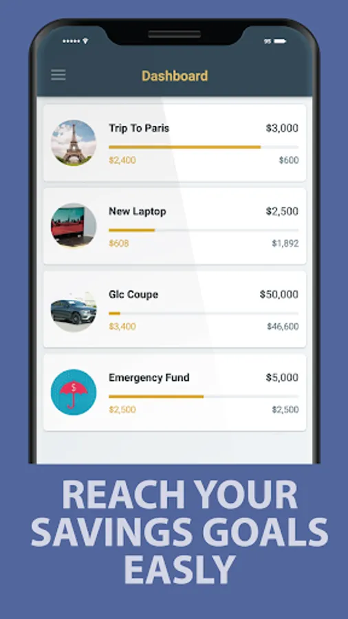 Ever dream of having a nice trip to Paris with your love, new flagship smartphone, new car, travel around the world or maybe your retirement plan? Let's make it happen with our Savings Goal tracker app.