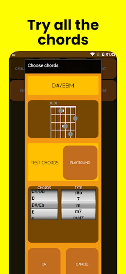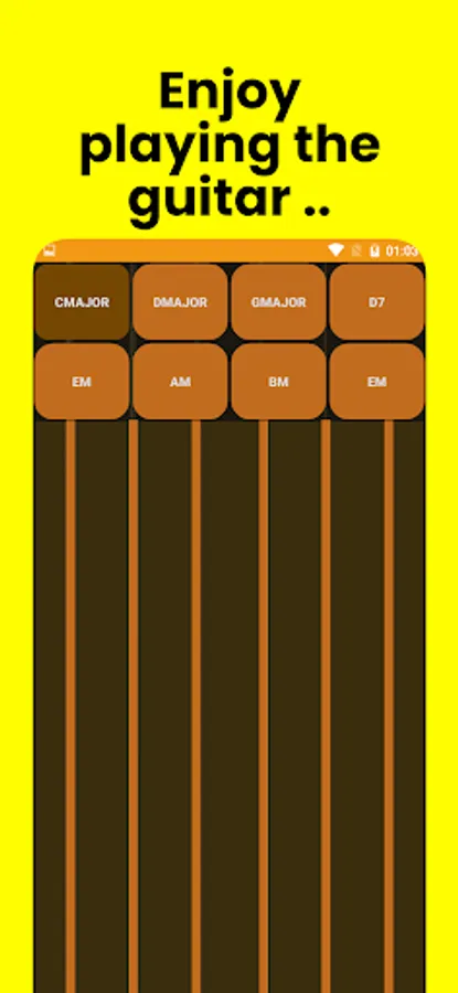 Guitar playing section: Enjoy guitar playing in this section, which includes a virtual guitar and many chords with the ability to customize chords.