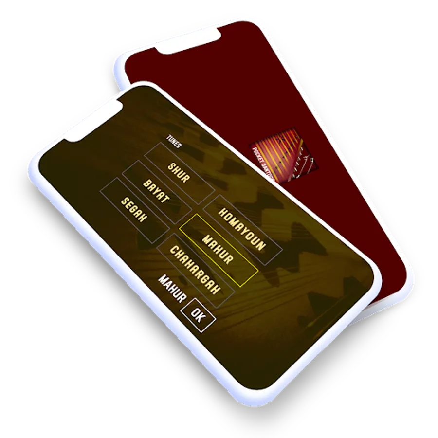 The pocket santoor program has all known santoor tunes such as: Shur - Humayun - Bayat - Mahur - segah and chahargah.