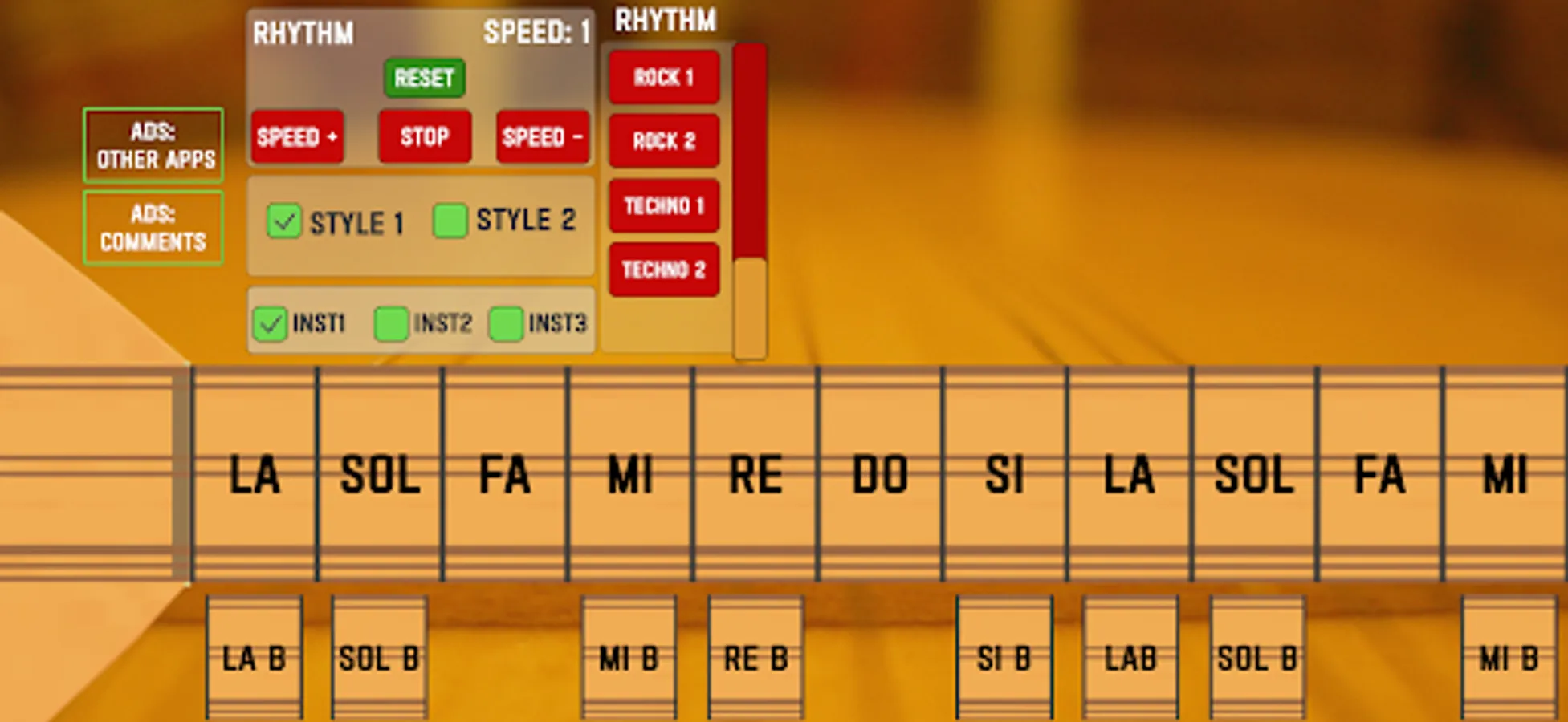 It has buttons to adjust the speed and reset the rhythms to accompany your playing with the Baglama instrument