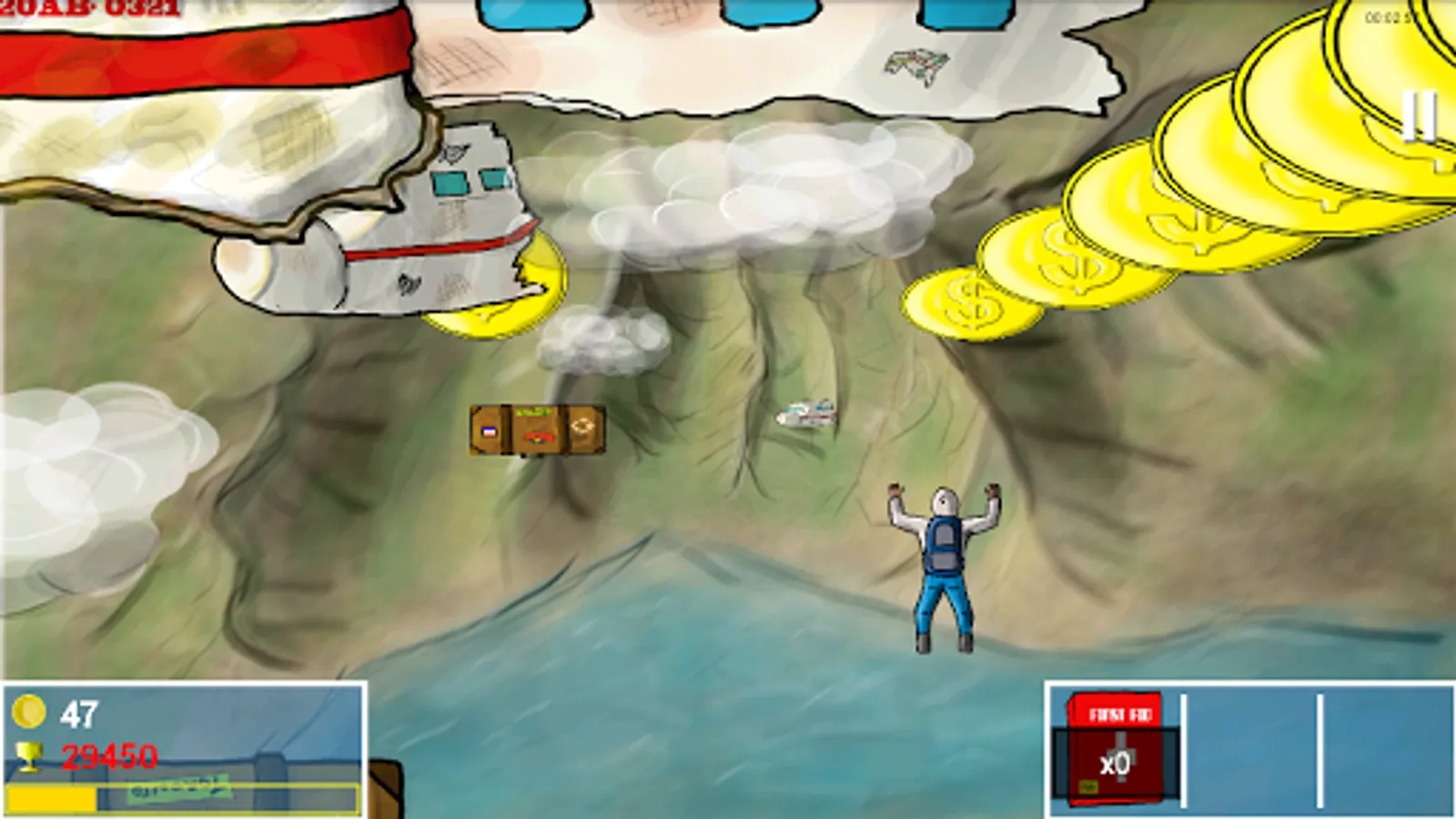 Objective: while sky diving dodge debris while grabbing coins and power ups!.
