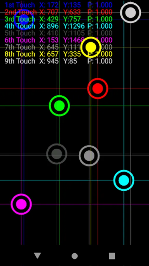 This application is able to handle UNLIMITED (umlimited here mean no more than allowed by operating system) number of simultaneous touch events. Don't blame me or my app if your device supports double touch only, please.