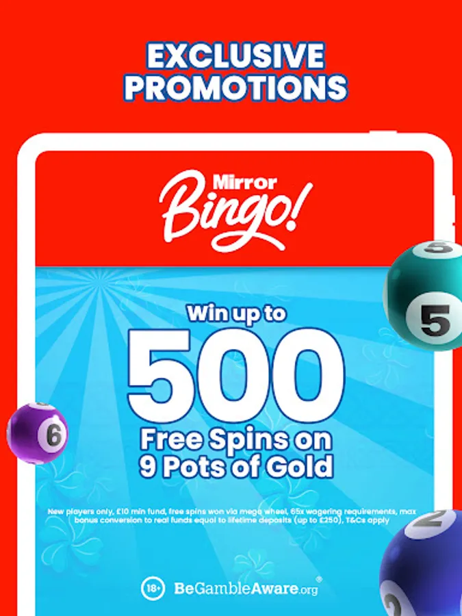 Welcome to the Ultimate Bingo Destination - Mirror Bingo!If you're a bingo enthusiast in the UK, get ready for an electrifying gaming experience like no other. Mirror Bingo, a leading bingo site in the UK, is your go-to destination for non-stop excitement, fantastic rewards, and a world of entertainment. Let's dive into the enchanting world of Mirror Bingo and explore our unique selection of Slots, Live Casino Games, Roulette, Blackjack and more what sets us apart from the rest.Unveil Your Welcome Offer - Win Up to 500 Free Spins!As you step into the world of Mirror Bingo, we greet you with a special Welcome Offer designed to make your journey even more thrilling. Your first deposit unlocks an exclusive opportunity: a spin on the Welcome Mega Wheel. Brace yourself, because this wheel holds the chance to win up to an incredible 500 Free Spins on the popular game "9 Pots of Gold." It's the perfect way to kick-start your adventure and aim for big wins from the very beginning. Don't forget to read through the full terms and conditions for all the details. Remember, this offer is exclusively for new players aged 18+ +, and we always encourage responsible gaming. New players only, £10 min fund, max bonus conversion to real funds equal to lifetime deposits (up to £250), 65x wagering requirements and full T&Cs apply! A World of Fun and Wins AwaitsMirror Bingo isn't just about offers - it's a thriving community of players who love bingo as much as you do. With a diverse selection of slot games to suit every preference and user-friendly interfaces that make navigation a breeze, you're in for a treat with every visit. Whether you're a seasoned player in search of fresh excitement or a newcomer looking to explore the world of online gaming, Mirror Bingo welcomes you with open arms.Playing Responsibly - Your Guide to a Great TimeWhile we're all about the thrill, we're equally committed to responsible gaming. Our terms and conditions lay out everything you need to know about our offers and promotions, ensuring complete transparency. From minimum deposit requirements to wagering conditions, we've got all the details covered. We encourage you to play responsibly and make the most of your experience while keeping it safe and enjoyable. Our dedication to promoting responsible gaming is for players aged 18 and above.Join Us at Mirror Bingo - Where Wins and Responsibility Go Hand in HandAre you ready to transform your gaming journey into a whirlwind of fun, excitement, and unforgettable moments? The adventure begins at Mirror Bingo, where the joy of winning meets the importance of responsible gaming. Our Welcome Offer is just the starting point of your thrilling experience. Don't wait any longer - dive into the excitement and let the good times roll! Your bingo dreams come true at Mirror Bingo - the place where responsible gaming and fantastic wins come together.