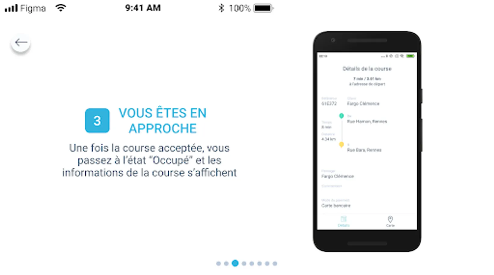 Besides the app, you will find all the information regarding your business activity on your personal web-based interface https://rn7.fg7.fr (account parameters, incomes, journeys’ recap, etc).