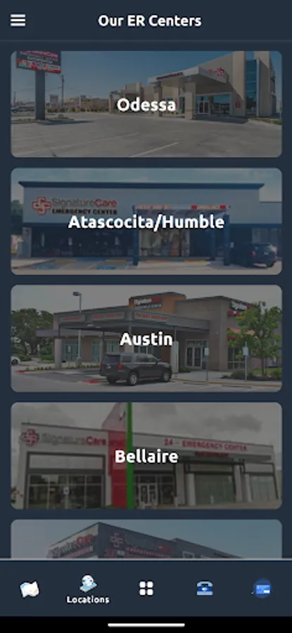 SignatureCare Emergency Center is a freestanding emergency room with locations in Westchase, Heights, Memorial City, Mission Bend/Sugar Land, Montrose, Stafford, Bellaire, Copperfield, Cypress/FM 1960, Austin, College Station/Bryan, Lewisville, Odessa, Midland, Killeen, Paris and Texarkana, TX. The ER is open 24/7 and staffed with board-certified physicians and licensed nurses. The emergency rooms' functions are like as Hospital ERs. SignatureCare sets goal on treating patients quick and help them to feel better as soon as possible. Now anyone can find the nearest location, get direction by only one tap in the app. So reaching us will be very convenient through it.