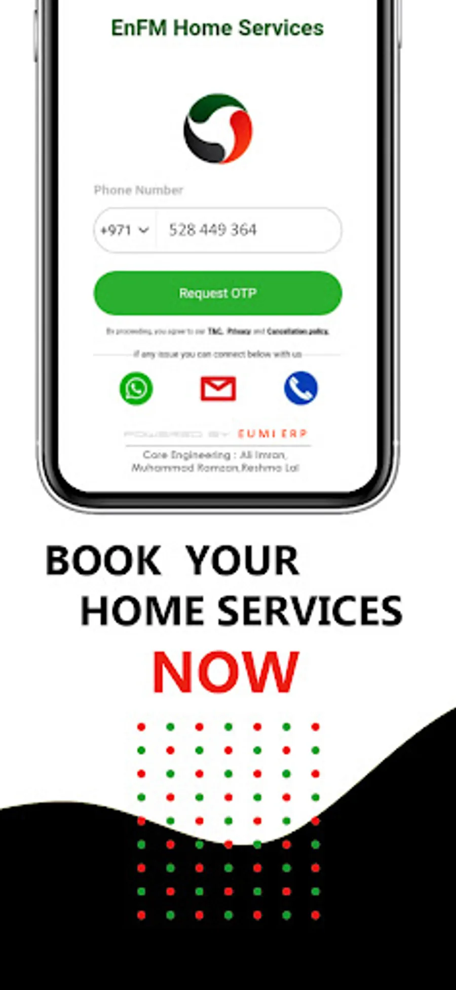 We have made whole process simple and hassle free where you can download EnFM Home service app, select the service/packages, select preferred date and time, make payment through credit card and our trained professionals will be at your premises to deliver the services.