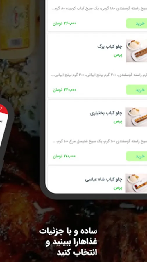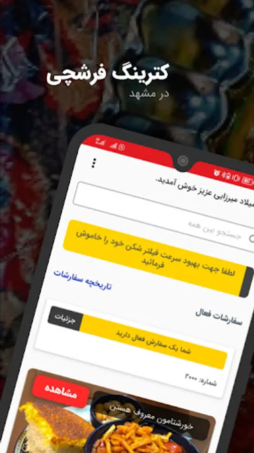 Farshchi catering, managed by Farshchi brothers and with 30 years of experience in the area of Airport Boulevard and Fadayan Islam, is one of the best and highest quality ready-made meals in the region. To become a brand with a special name, we have chosen the name "Farshchi" and in In line with the satisfaction of our dear customers and in line with the advancement of technology, we have decided to design a food ordering application for the first time in the region. From now on, you can order your food online and have it delivered to your desired address!