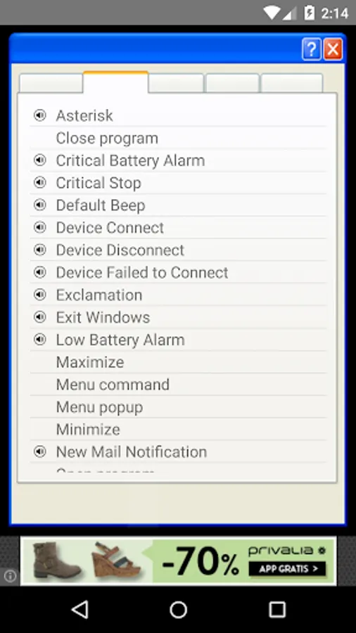 This app is a nice emulator for Windows XP sounds. Have fun putting the sounds of hardware failure or peripheral connection when a family member or friend is in front of a computer and you can spend a joke.