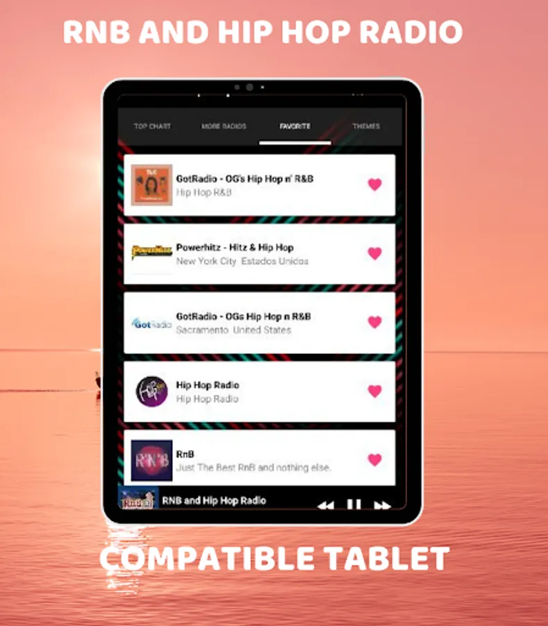RnB and Hip Hop Radio is a mobile application that allows you to listen to the best music from your cell phone or tablet, from wherever you are, 24 hours a day.