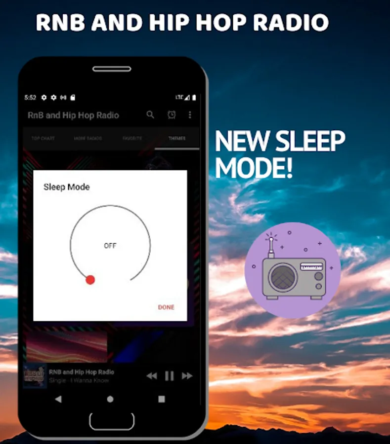 This RnB and Hip Hop Radio app requires an internet connection.