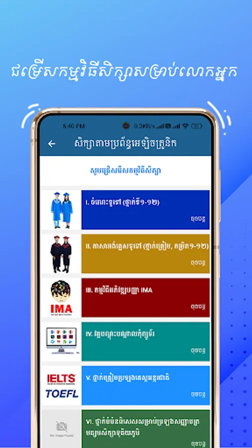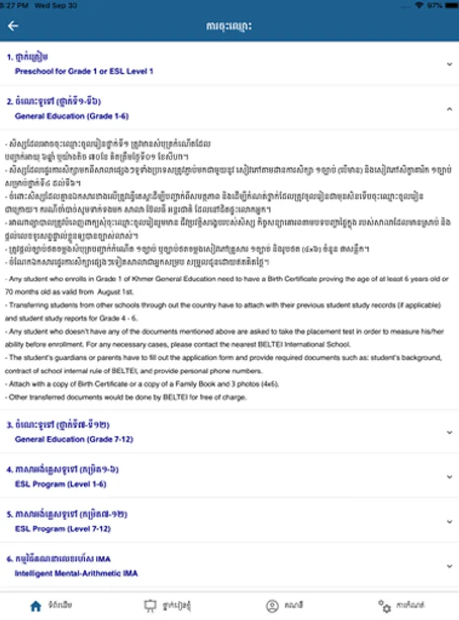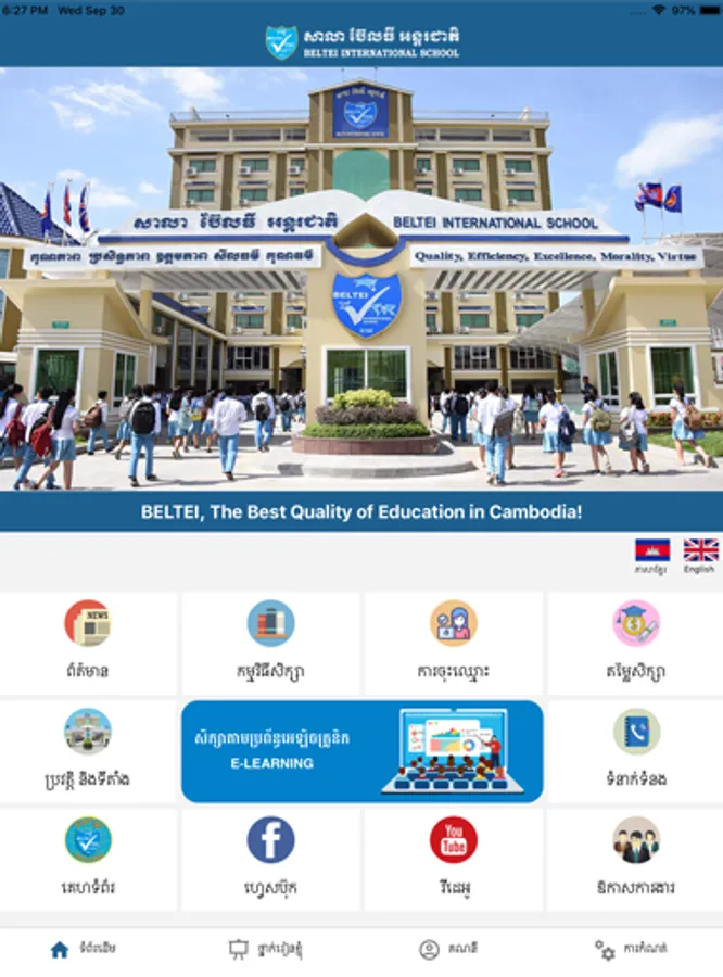 The BELTEI IS App is a digital E-Learning program, including General Education (designed and conducted in accordance with the Ministry of Education, Youth and Sports (MoEYS) curriculum and syllabus from grades 1 to 12 and provides useful lessons for the secondary school and High school national examination), English as a Second Language (Preschool 1 to Level 12), Intelligent Mental-Arithmetic, Computer Training Course, International Test Preparation Course, and other academic programs. All learners can use the BELTEI IS App to review lessons or help fill their imperfections during class and learn new skills.