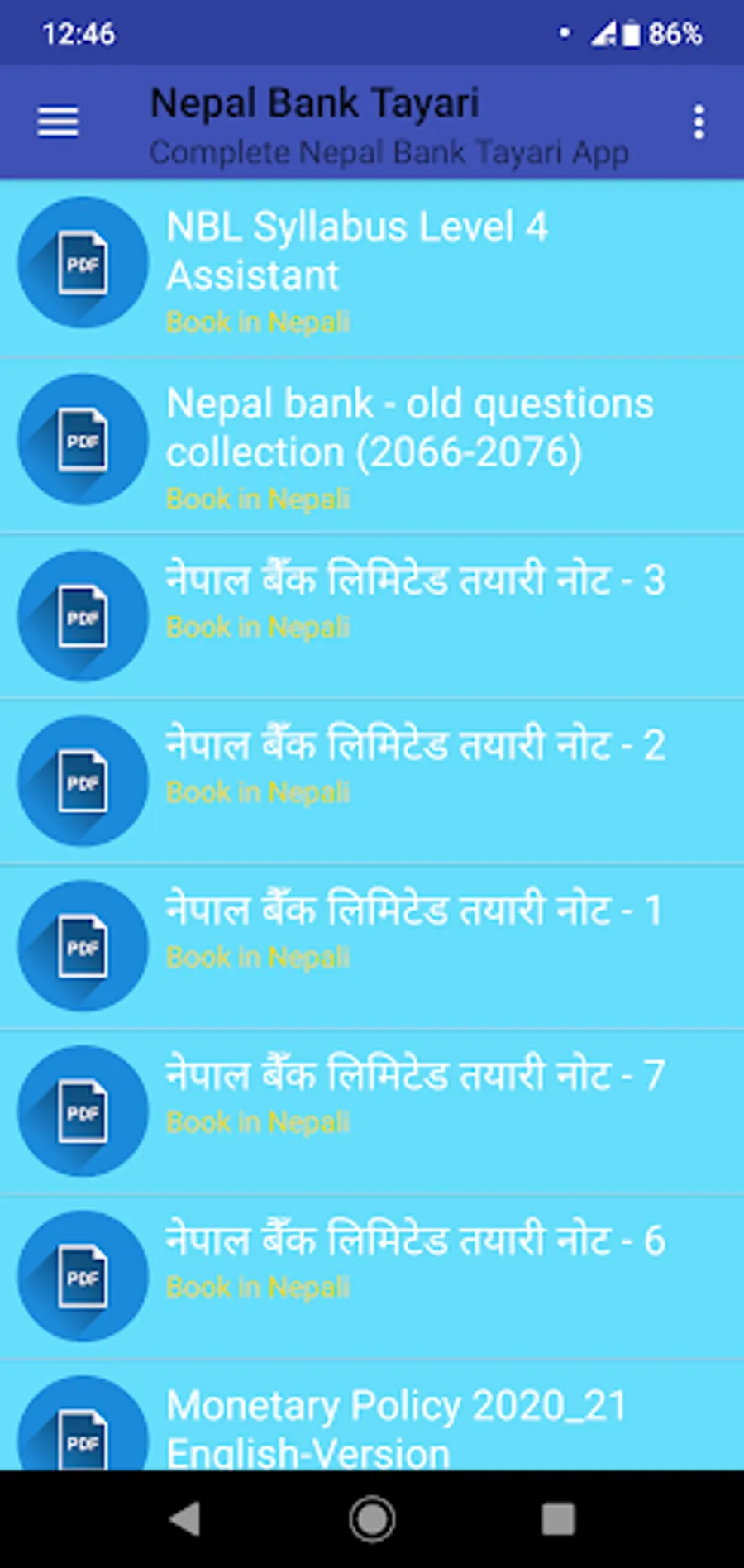 We designed very comfortable for user experience so that it can assist you to prepare Nepal Bank Exam Tayari. All are free to access and we are updating app frequently so you can get all new material instantly into the apps.