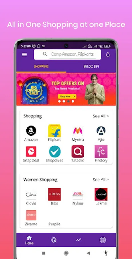 It is an All in One Online Shopping App & Ease to buy Below Rs 299 that Makes an easy way to shop e-commerce 200+ sites India.