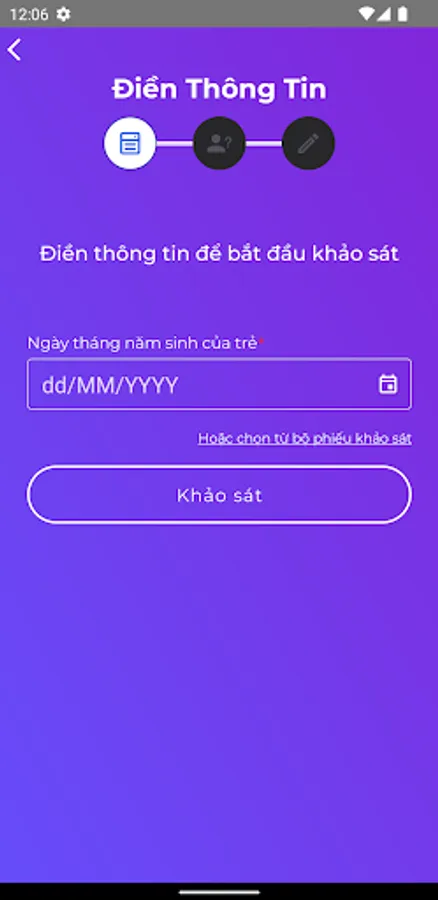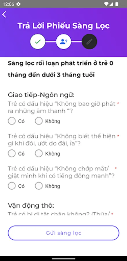 Screening Tool, Early Detection, Early Intervention for Children with Disabilities is an application built by the Department of Medical Examination and Treatment (Ministry of Health) in cooperation with the Center for Sustainable Health Development (VietHealth) to help people automatic screening and early detection of children's disabilities through a set of screening questionnaires.