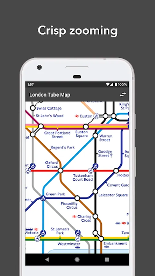 The tube map of the London tube (aka underground), as well as public transit/transport maps – all available offline. Zoom in, zoom out, scroll around. Quick, easy, and there when you need it! This app is excellent for visitors to London and longtime residents alike.