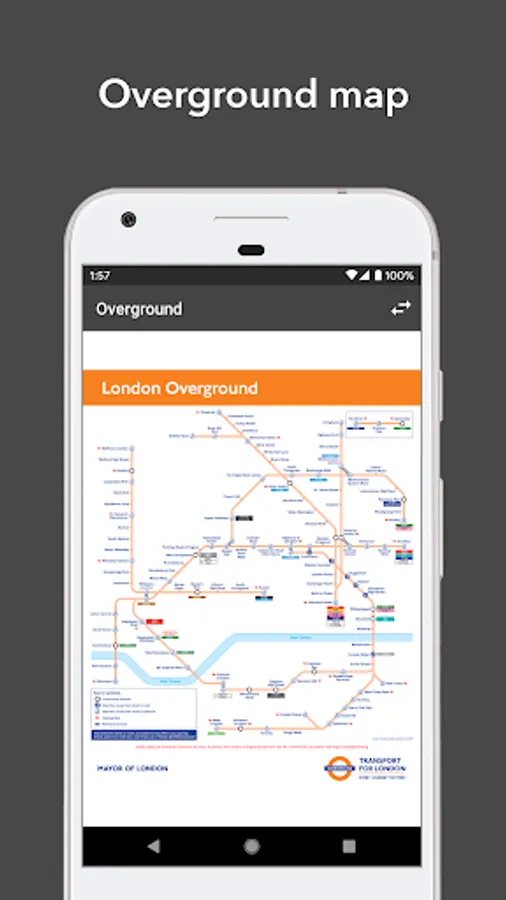 Includes a complete set of maps for the London tube/underground, bus, overground, TfL rail, DLR, national rail, tram and river – basically all transit types – from the official TfL sources.