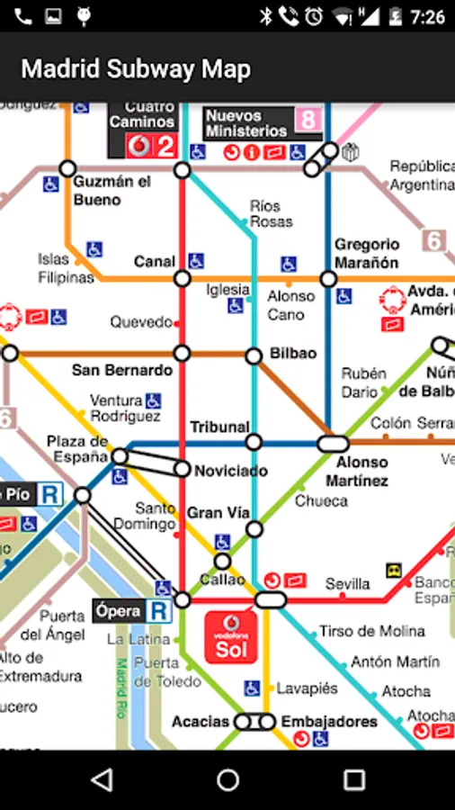 The Madrid metro map, available offline. Zoom in, zoom out, scroll around. Quick, easy, and there when you need it!