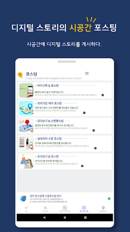- Provides a function to connect micro-contents to a location in a specific space and connect the contents through location search in the mobile app