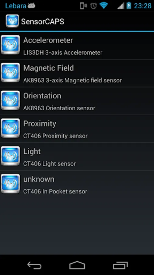 SensorCAPS is an application to view and show all the sensors on your device. Data can be retrieved in real-time and the software does display all found sensors and displays every possible information like manufacturer, range and power consumption.