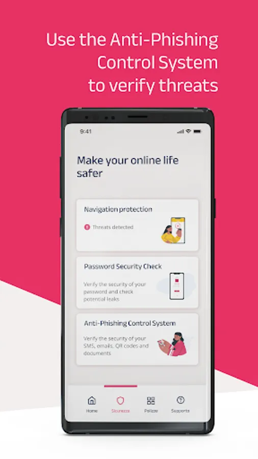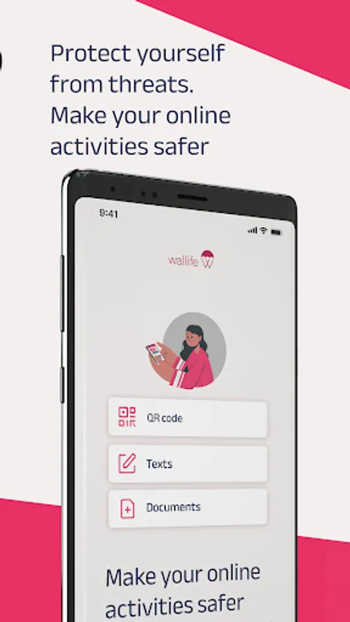 • Check the security of links, SMS, QR codes, emails and documents through the Anti-Phishing service; the Wallife App will tell you if links or documents are safe to open