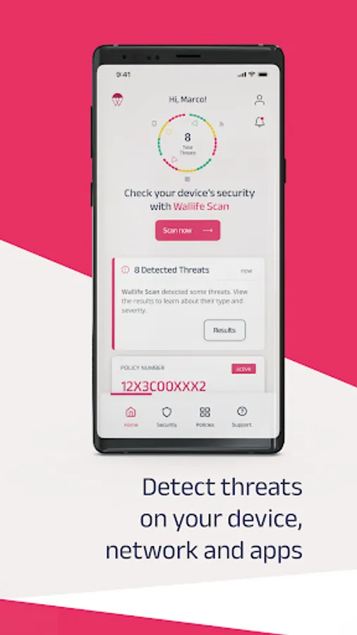 • Detect more than 60 threats on your device, network and app with the Wallife Scan